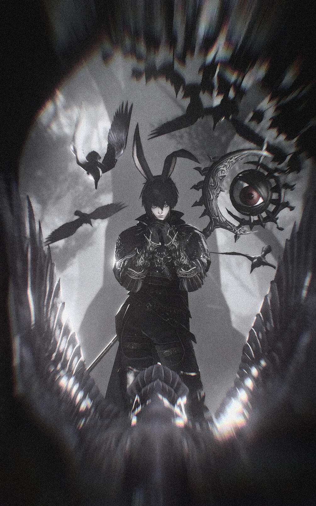 A tall figure approaches you at a slow pace, long ears perked up like antennas that are actively being circled by a murder of crows. You hear a murderous caw and the eyeball crowning the staff in his hand glares at you; you suddenly relive memories of your past as they appear in your vision like a lucid dream. The constantly cawing, tapping and rattling of the crows is all you can hear as your memories flashing in and out of your vision is all you see. Just who is this... person?